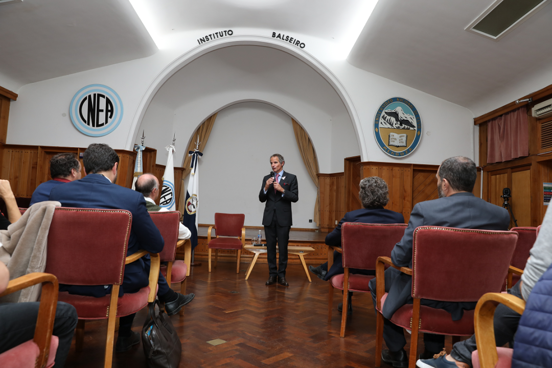 Grossi visitó la sede central del Invap, acompañado de la gobernadora rionegrina, Arabela Carreras, y el ministro de Relaciones Exteriores, Comercio Internacional y Culto, Santiago Cafiero. También, estuvo en el Centro Atómico que funciona en esta ciudad, en la Fundación Intecnus y en el Instituto Balseiro, donde ofreció una conferencia de prensa, escoltado por la presidenta de la CNEA, Adriana Serquis, y el director del Balseiro, Mariano Cantero.