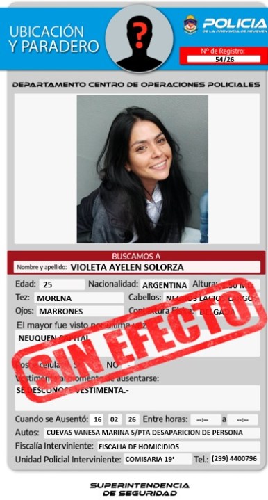 La Policía de Neuquén desactivó la alerta de "ubicación y paradero" para dar con la joven de 25 años que fue era buscada desde hace una semana en la ciudad capital.