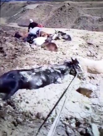 Siete caballos quedaron atrapados en la arena en un cañadón de la zona de bardas en Allen