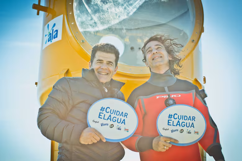 El músico, que es amante del buceo, compartió el entusiasmo con otro fanático de ese deporte, Julián Weich, que también se sumó a la propuesta, que tuvo un carácter artístico y solidario, potenciando una campaña para el cuidado del agua y el ambiente.