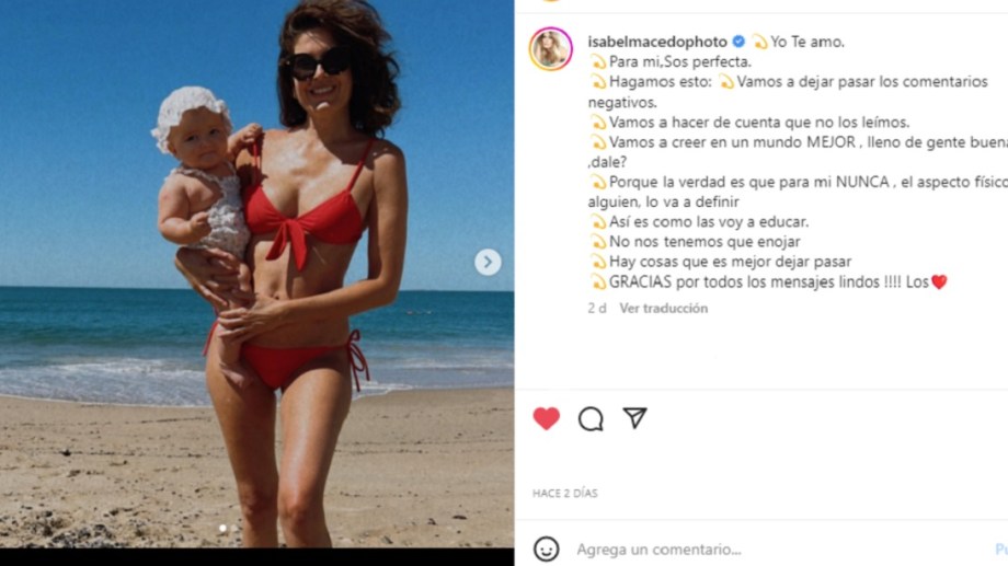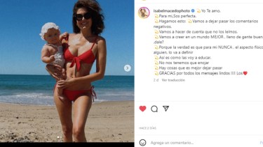 Antes de la entrevista, la actriz publicó una nueva foto junto a su bebé con un tierno mensaje para ella. “Te amo. Para mi, sos perfecta. Hagamos esto: Vamos a dejar pasar los comentarios negativos. Vamos a hacer de cuenta que no los leímos. Vamos a creer en un mundo mejor, lleno de gente buena, dale? Porque la verdad es que para mi NUNCA, el aspecto físico de alguien, lo va a definir. Así es como las voy a educar. No nos tenemos que enojar. Hay cosas que es mejor dejar pasar”, recitó Isabel.