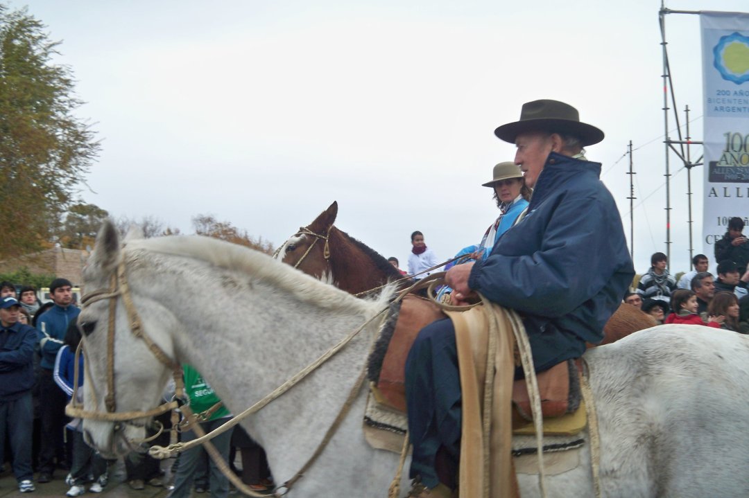 Una foto los muestra juntos, avanzando en el desfile patrio. Claudia, su hija, lo observa abstraída, contamplándolo, en el Centenario local, pero con sabor a despedida. Jacobo Retamal era el jinete a su lado, el trabajador rural que llegó a Allen en 1930.