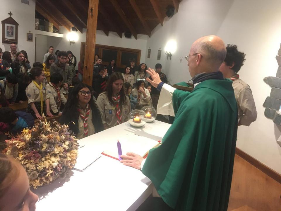 El Grupo Scout está destinado a chicos de 7 años a 21 años que se reúnen los sábados por la tarde. Esos encuentros finalizan con una misa poco tradicional. Sucede que muchos de los chicos son apasionados de la música y armaron un coro al que le ponen su impronta.