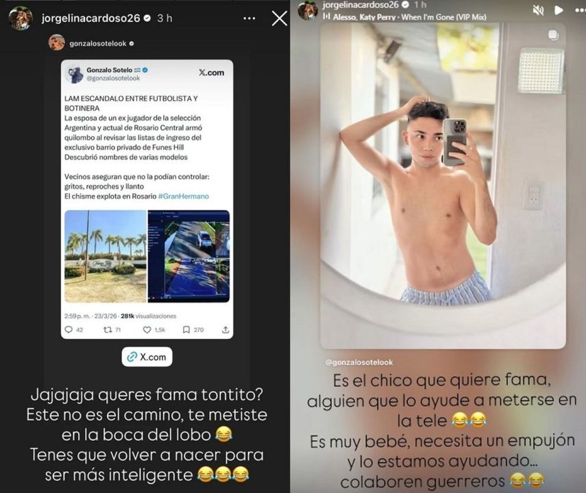 Todo comenzó cuando el influencer Gonzalo Sotelo publicó en la red social X una versión que indicaba que Jorgelina Cardoso habría revisado los ingresos del barrio privado donde vive con su familia y habría detectado la presencia de modelos.