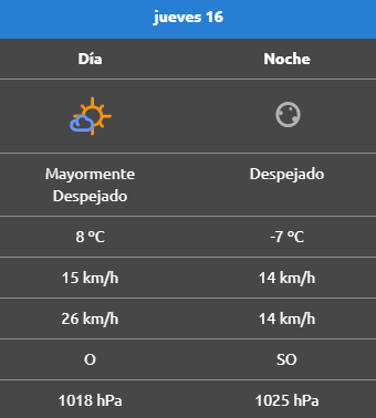 Por la noche la mínima será de 0°C, mientras que el viento oscilará desde el sur con ráfagas superiores a los 30 km/h.