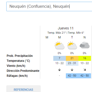 Por su parte el Servicio Meteorológico Nacional, pronosticó vientos del norte con velocidades de entre 13 y 31 km/h durante el día, y del noroeste con la misma intensidad por la noche. En tanto precisó que las ráfagas podrían alcanzar los 50 km/h durante la tarde.