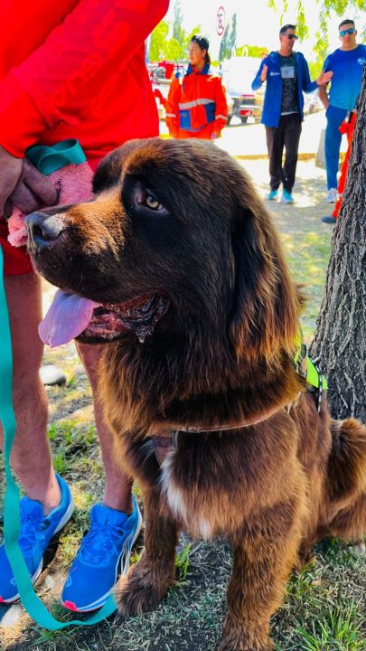 Justo es de raza Terranova, oriunda de Canadá donde los pescadores los incorporaban para trabajar en la pesca. Este tipo de perros arrastraban las redes, se metían al agua y ayudaban a sus dueños. Con el correr del tiempo se dieron cuenta que los perros eran muy compañeros e incluso intercedian en rescates. “Fue ahí que se percataron que era un perro que se podía usar para rescates. Los fueron incorporando con el tiempo a los barcos y resultaron ser muy eficaces cuando algún marinero o alguna persona se caía al agua porque el perro se tiraba automáticamente y con una soga arrastraba a la víctima hacia el barco”, especifica Menna.