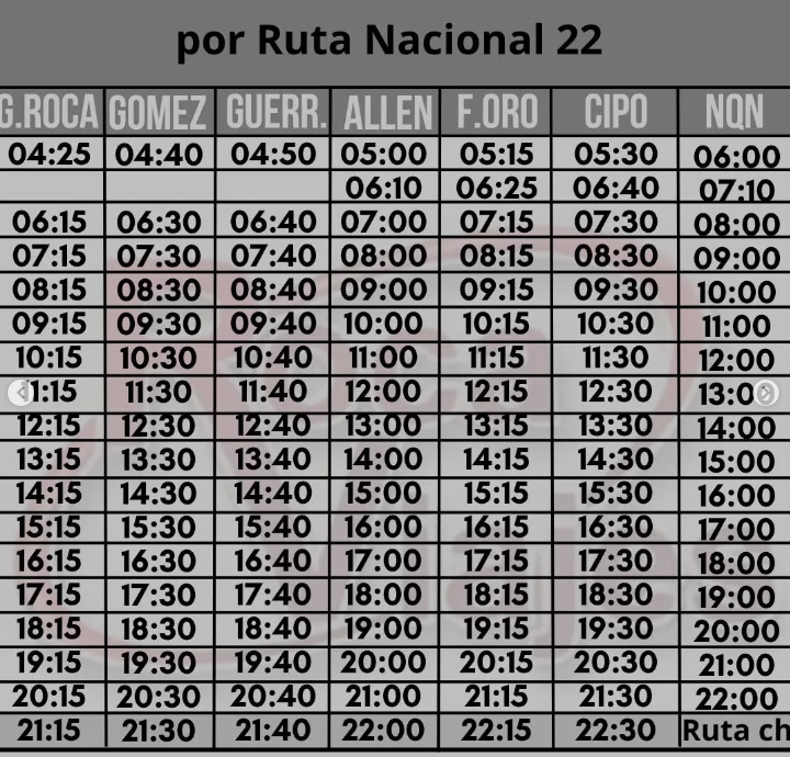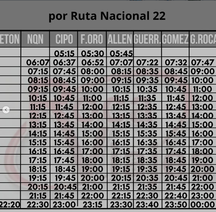 - Servicio por Ruta 22 de Neuquén a Roca