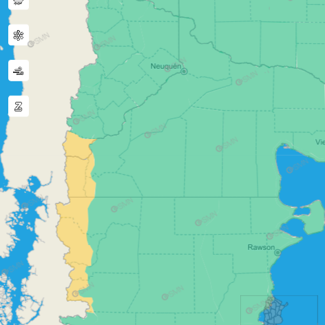 Según el informe del SMN en la zona de la cordillera de Río Negro y el sur de Neuquén rige una alerta amarilla por nevadas para este viernes. Esto significa que habrá nevadas de variada intensidad, con valores de nieve acumulada que oscilan entre los 20 y 30 cm,