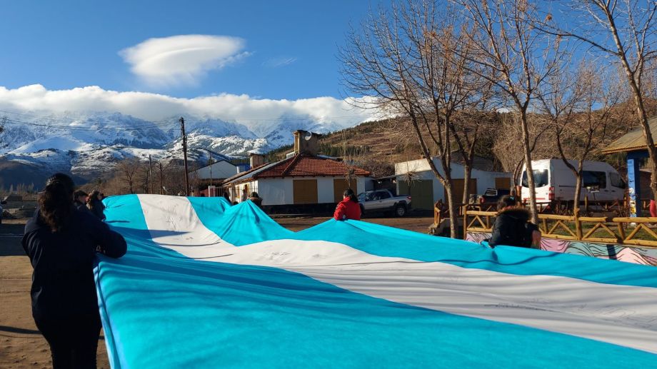 El año pasado, los vecinos de la localidad desplegaron 345 metros por la enseña patria. Sin embargo, este miércoles superaron el récord y la comunidad trasladó una bandera argentina que superó los 400 metros de longitud, consolidándose como la más larga del país.