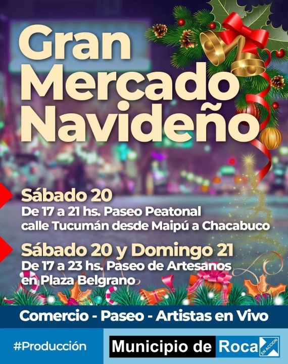 La calle Tucumán se vuelve peatonal en Roca: los detalles del gran Mercado Navideño este fin de semana