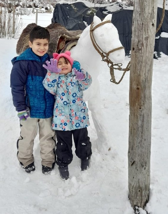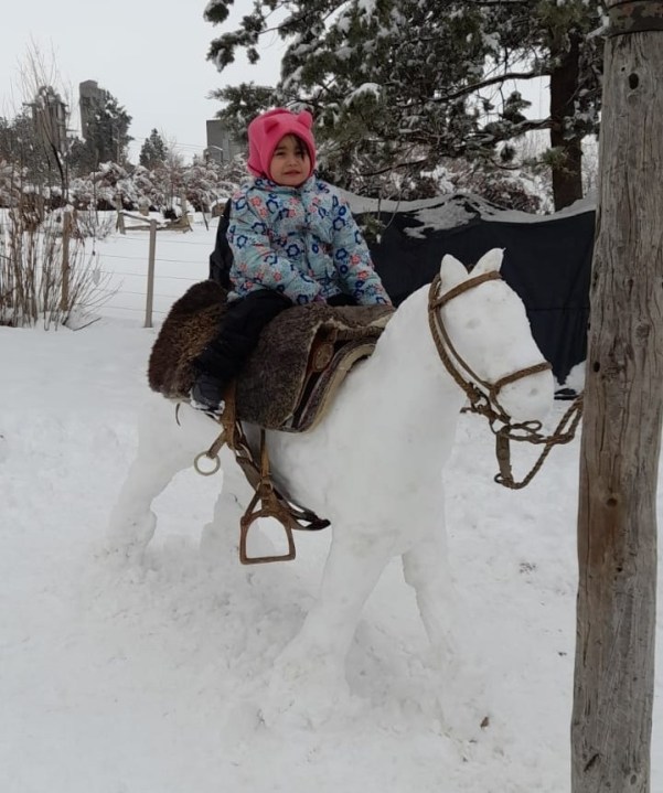 «Nosotros vivimos en una zona de chacra, la nieve era mucha y decidimos hacer un caballo para no caer en el típico muñeco«, contó Matías Pinilla papá de Julieta (6) e Ignacio (8), hijos que comparte con su esposa Daiana.