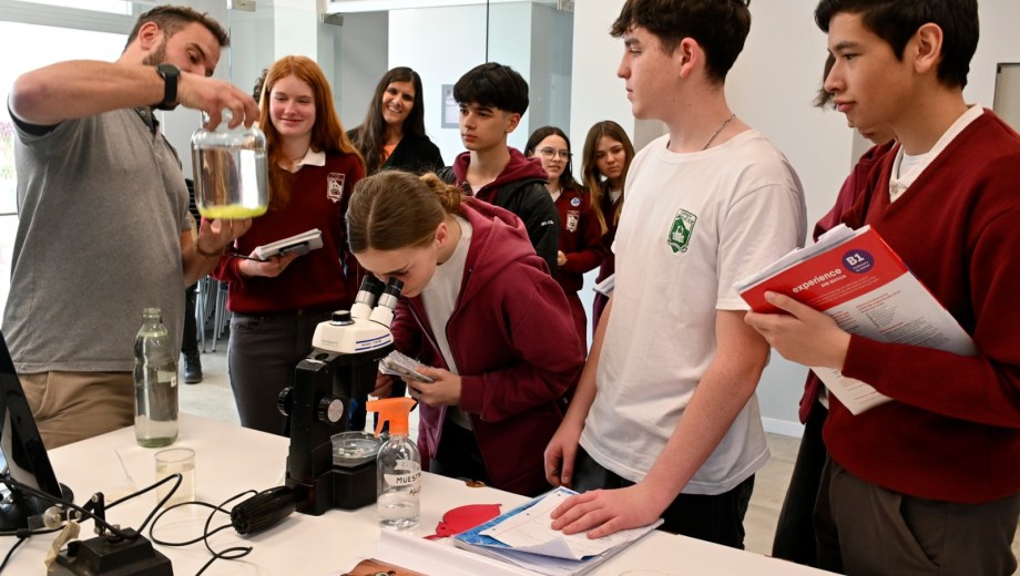 Gisela Gigliotto, directora de nivel medio del Colegio San Patricio, tomaba algunas fotos de los estudiantes observando atentamente las explicaciones de los científicos. «La propuesta surgió de dos profesoras del área de Naturales para traer a segundo año y quinto año. Los chicos tienen tareas asignadas; de modo que están tomando nota. Los noto bastante receptivos. Tienen un conocimiento previo pero no se animan a preguntar de entrada. Al escuchar las explicaciones, se sueltan», mencionó.