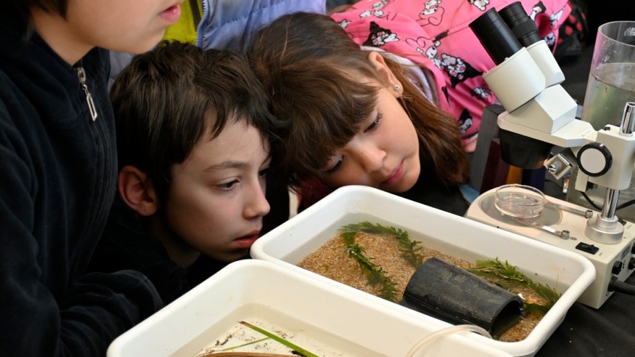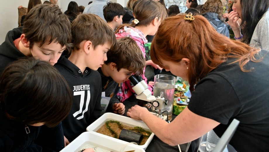 «¿Y esto qué es?«, preguntó otro niño en otra sala, señalando una maqueta. «Una deforestación», le indicaron y continuó una explicación detallada, pero sencilla. Otro miraba atento por microscopio un alga Didymo. «‘Vieron que hay carteles para extremar los cuidados con el alga Didymo porque invade distintos cuerpos de agua? Es importante al llegar a casa, lavar absolutamente todo», advertía una investigadora.