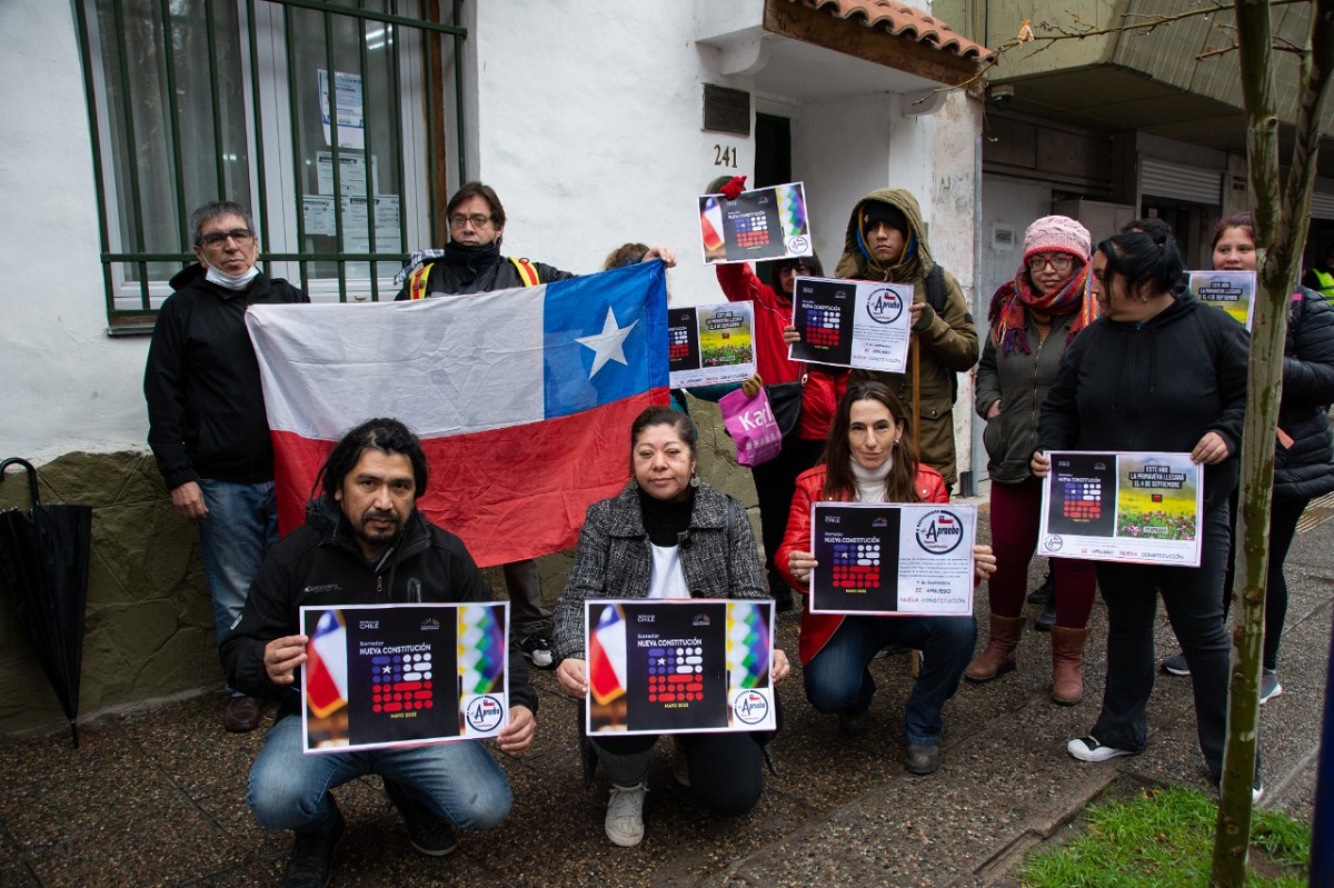 La nota fue entregada al cónsul Jorge Beals Pott y contó con el acompañamiento de organizaciones sociales, sindicales, políticas, religiosas y de Derechos Humanos. Todas las personas manifestaron su voluntad para que gane el “Apruebo” para la reforma.