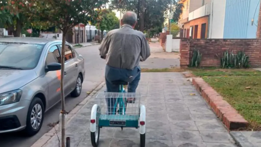 La emoción del jubilado al que le robaron en Córdoba: le donaron una tricicleta