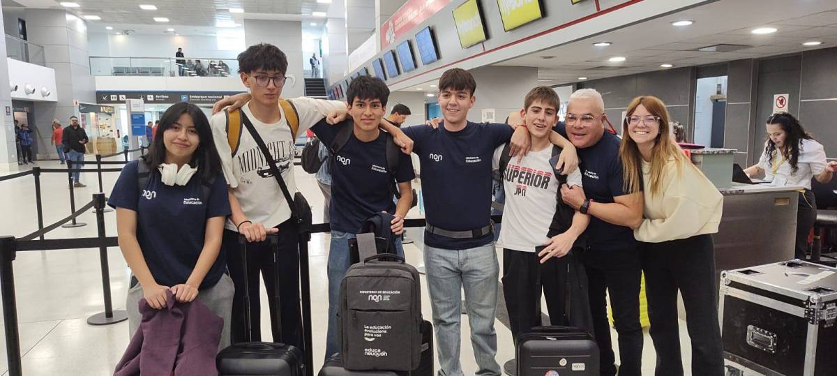 Seis estudiantes de la EPET 20 de Neuquén aguardan en el aeropuerto de Bogotá su próxima parada: Panamá, donde concursarán por la copa mundial de Robótica. Viajan desde la Patagonia argentina con su proyecto «Yerbas Bot» para competir junto a más de 100 países en la novena edición de la copa mundial de robótica FIRST Global Challenge 2025.