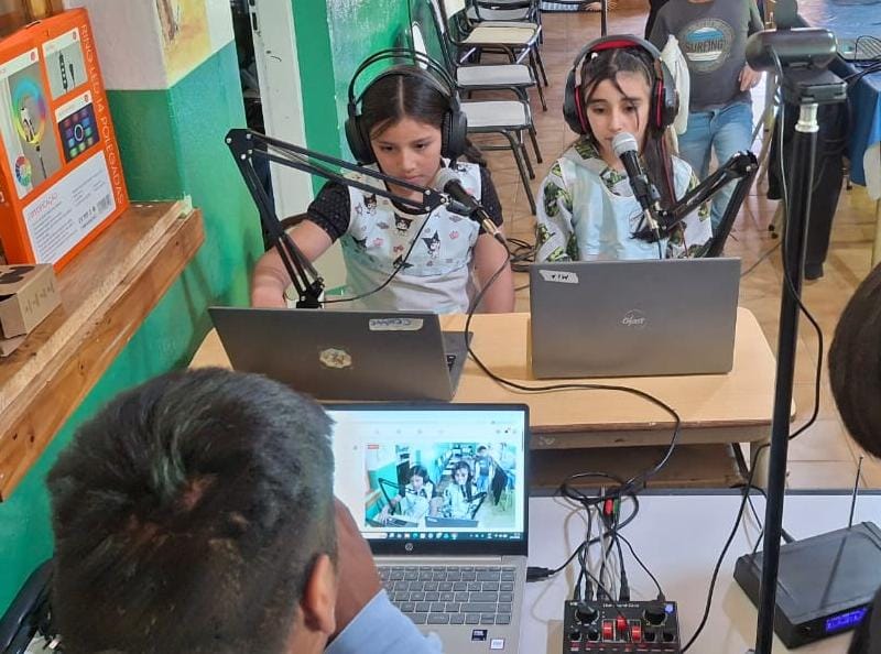 El proyecto tiene un objetivo claro: fortalecer la alfabetización y el vínculo con su comunidad educativa. En una escuela multigrado, con estudiantes de entre 10 y 13 años (y una niña de jardín que empieza a sumarse), la radio se convirtió en una herramienta clave, como la vocación de la profe Moni y su compañero, Jonatan Gonzalo Mamani, el profe Joni.