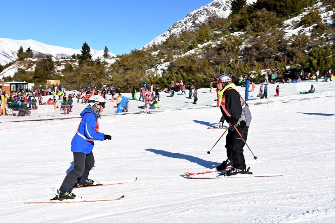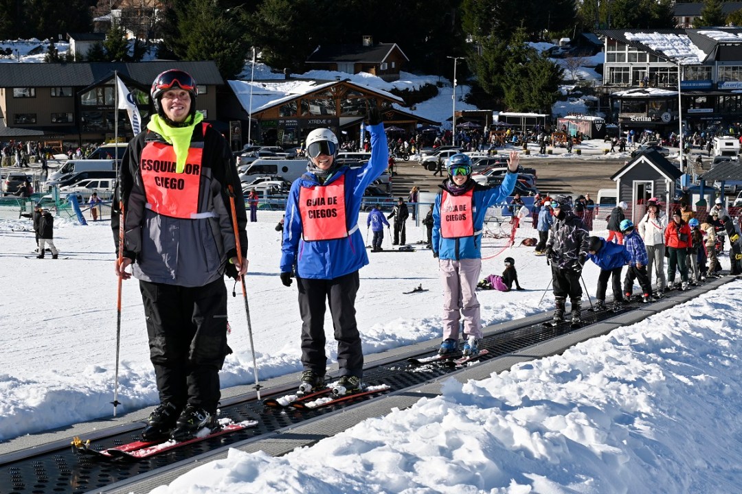 La actividad de concientización tuvo lugar en Magic V, el sector de principiantes, este viernes por la tarde. A quien accedía a participar de la experiencia, se le explicaba la técnica -idéntica a la tradicional-, se le colocaba una venda o un cubre antiparras y se emprendía la bajada. Muchos, entusiasmados, lo intentaban varias veces.