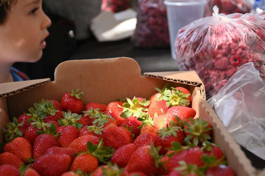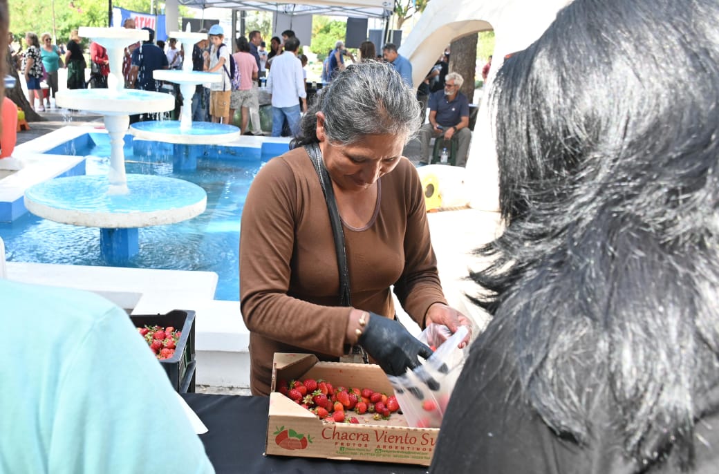 En la feria había frutillas, frambuesas y moras. Provenientes de la producción de 17 familias de Plottier y Senillosa. «Directo de la chacra a tu mesa», indicaron desde la convocatoria.