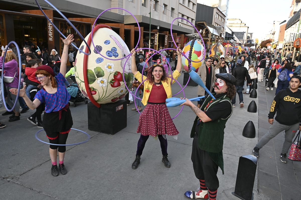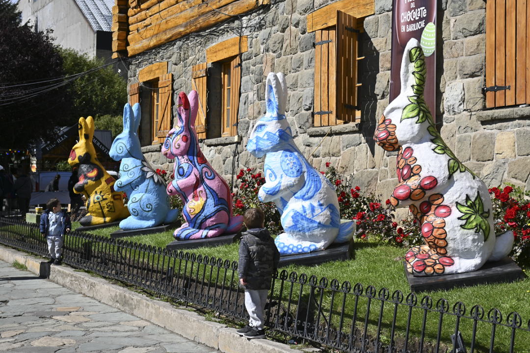 Una pequeña multitud caminó desde temprano entre los grandes huevos y conejos que forman parte de la ornamentación de la fiesta y a esa puesta en escena también aportaron los chicos que lucen las vinchas con orejas de conejo, entregadas a sus clientes por todas las chocolaterías.