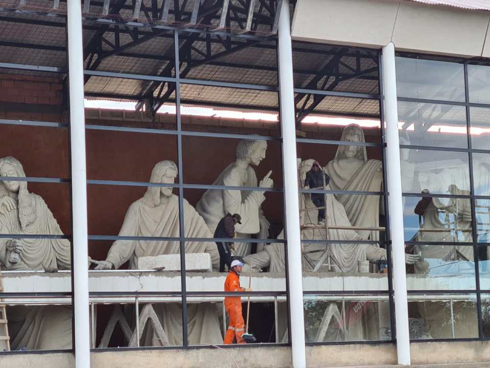 En estas horas resta la pintura exterior y los detalles de los revoques. A las esculturas en sí se le construyó la mesa de 25 metros de largo. La estructura de todo está hecha con caños del tipo tubbing, varillas de hierro y cemento.