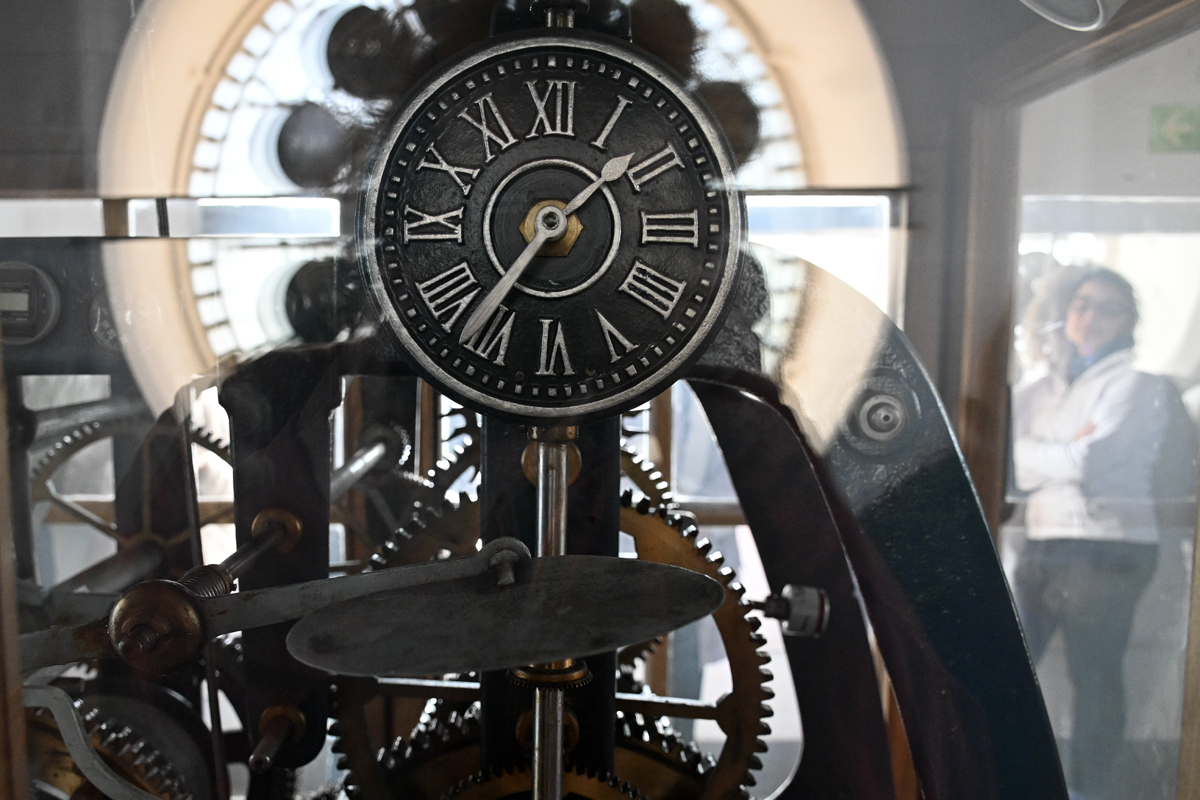 La recorrida termina en el último piso de la torre donde se puede apreciar el mecanismo del reloj de péndulo, similar a un cucú. La máquina es resguardada por una cabina de madera que está ubicada en el centro de la sala.