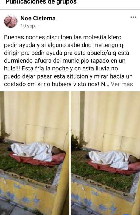 El buen accionar de una vecina dio a conocer la situación del abuelo quien a principio de mes se encontraba durmiendo a la intemperie mientras se cubría con hule del frío y la lluvia. La imagen impactó de forma inmediata en los vecinos quienes se fueron acercando con algún plato de comida, mientras otros alertaban a las autoridades.