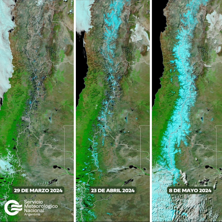 Las bajas temperaturas con nevadas en buena parte de la zona cordillerana del país, siguen regalando paisajes soñados y anticipan un invierno prometedor para los puntos turísticos de Neuquén y Río Negro. El Servicio Meteorológico Nacional (SMN) difundió imágenes satelitales impactantes que revelan el progreso de la nieve.