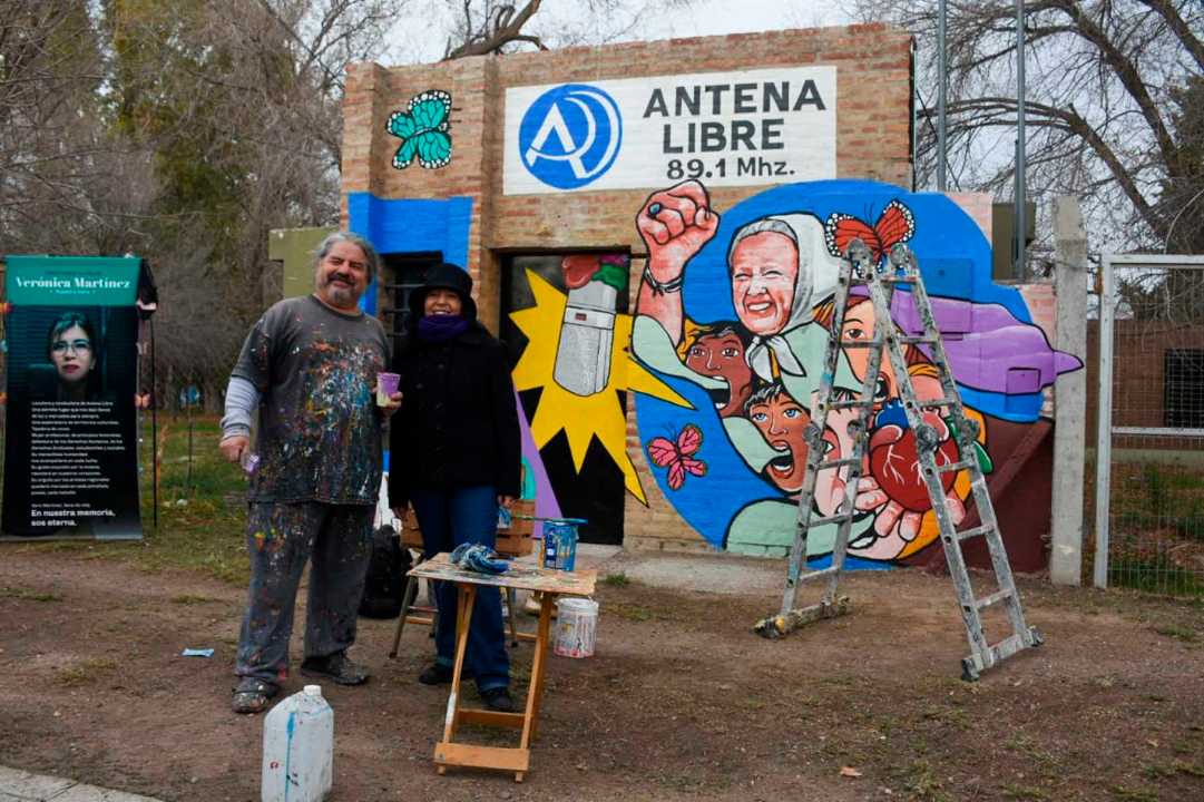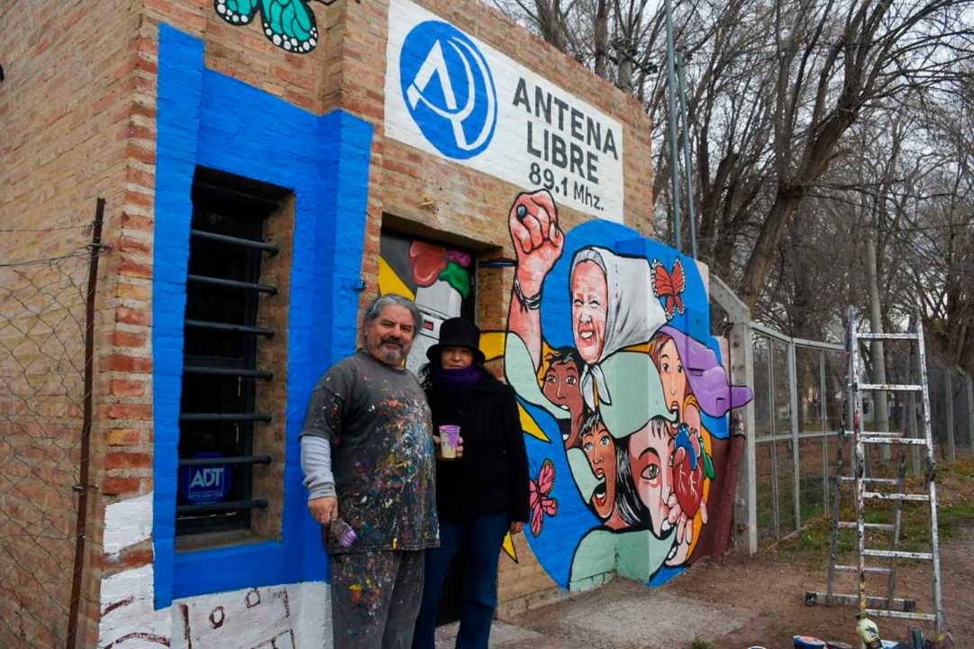 Entre las actividades del festejo esta el mural de la fachada de la radio, a cargo del artista de la región Chelo Candia. Desde el jueves pasado que viene pintando trazo por trazo. Pero, este mural tuvo una particularidad: falleció la madre de Plaza Línea Fundadora, Norita Cortiñas y eso cambio los planes de Chelo.