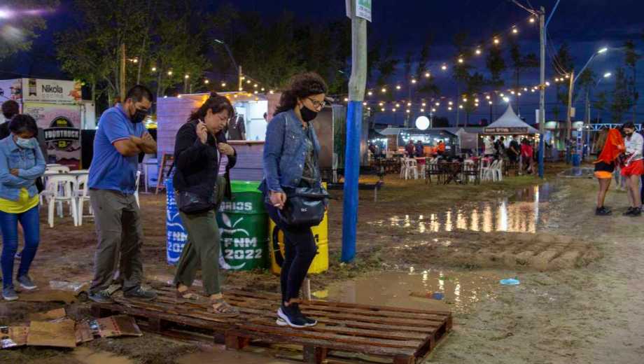 Durante la tarde, la caída de lluvia y granizo hizo temer lo peor ya que en el predio se formaron varias “lagunas” no sólo frente al escenario “Carlos Soria” sino también en varios de los sectores de tránsito de público.