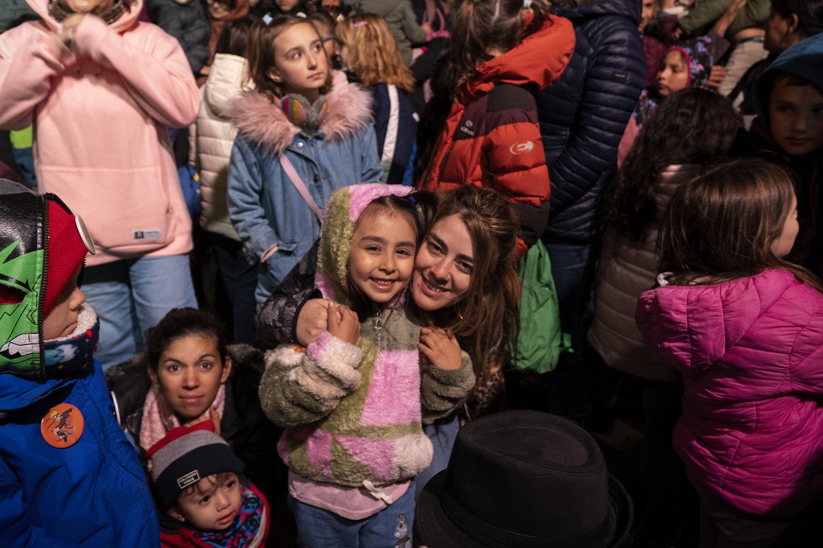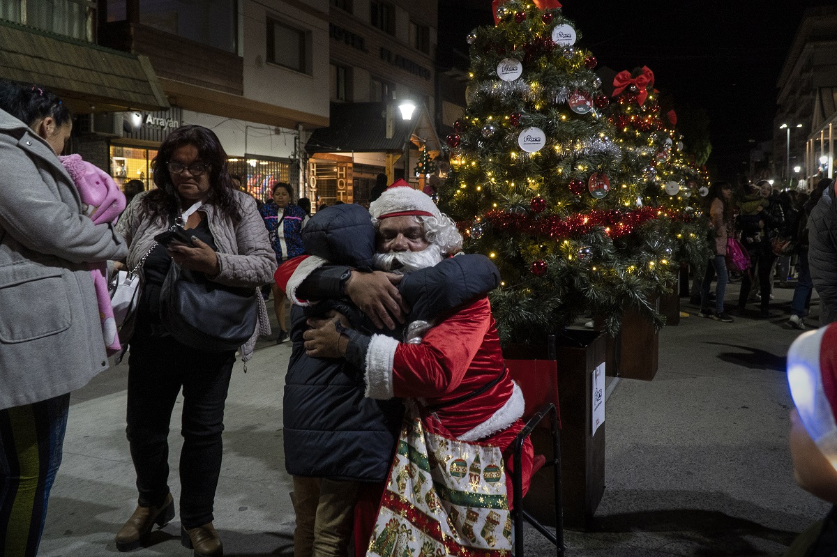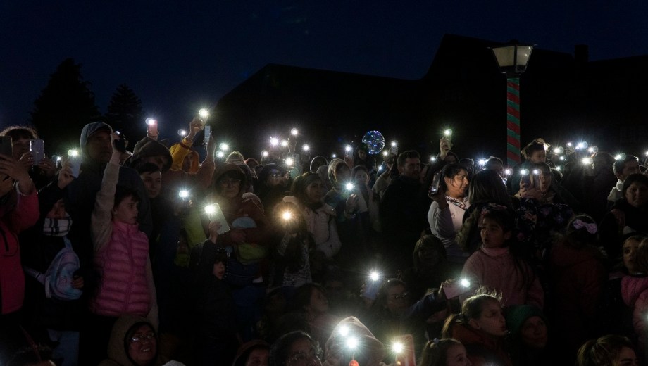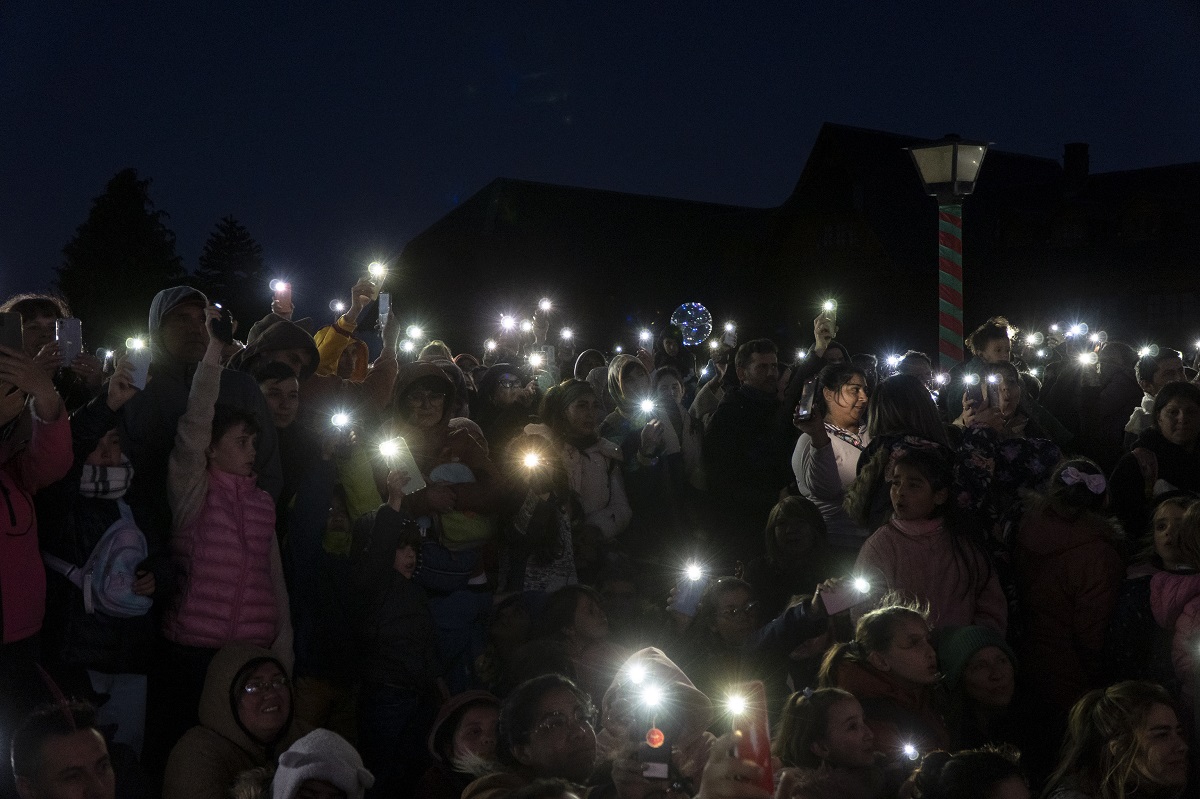 “¡Papa Noel! ¡Empecemos a llamarlo!”, invitó el conductor del evento en un Centro Cívico colmado de turistas y barilochenses. De pronto, Papa Noel apareció en el balcón del Municipio, las luces de la plaza se apagaron y empezó el conteo regresivo. “10, 9, 8…”, coreaba la gente. Una vez más, como desde hace 10 años, las luces del enorme pino navideño se encendieron y el público aplaudió emocionado. “¡Arranca la Navidad en Bariloche!”, anunció el conductor.