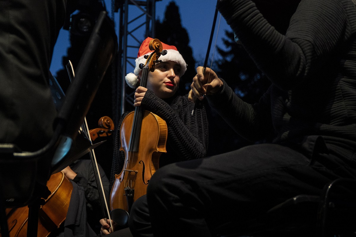 Al término de la presentación, el conductor anunció que, por un inconveniente, los técnicos de la Cooperativa de Electricidad Bariloche estaban solucionando un problema técnico. Se trataba, en realidad, del director de la Orquesta Filarmónica de Río Negro, Martín Fraille, que desde una grúa dirigió un concierto navideño. Un músico con bandoneón apareció en el palco de la Municipalidad y otros dos violinistas, en el balcón de la Secretaría de Turismo.
