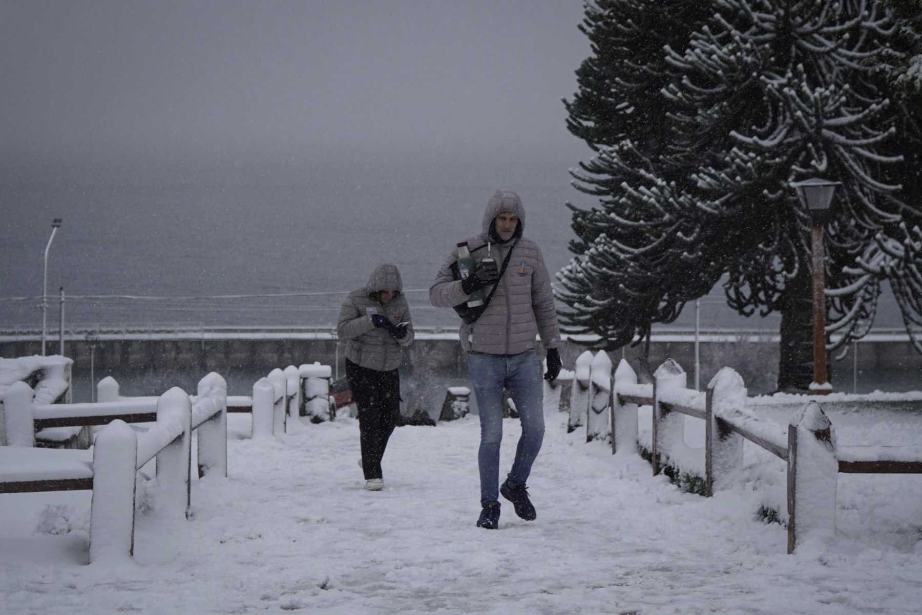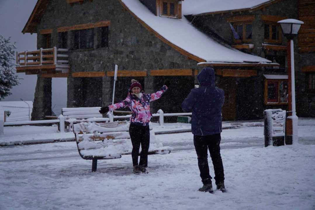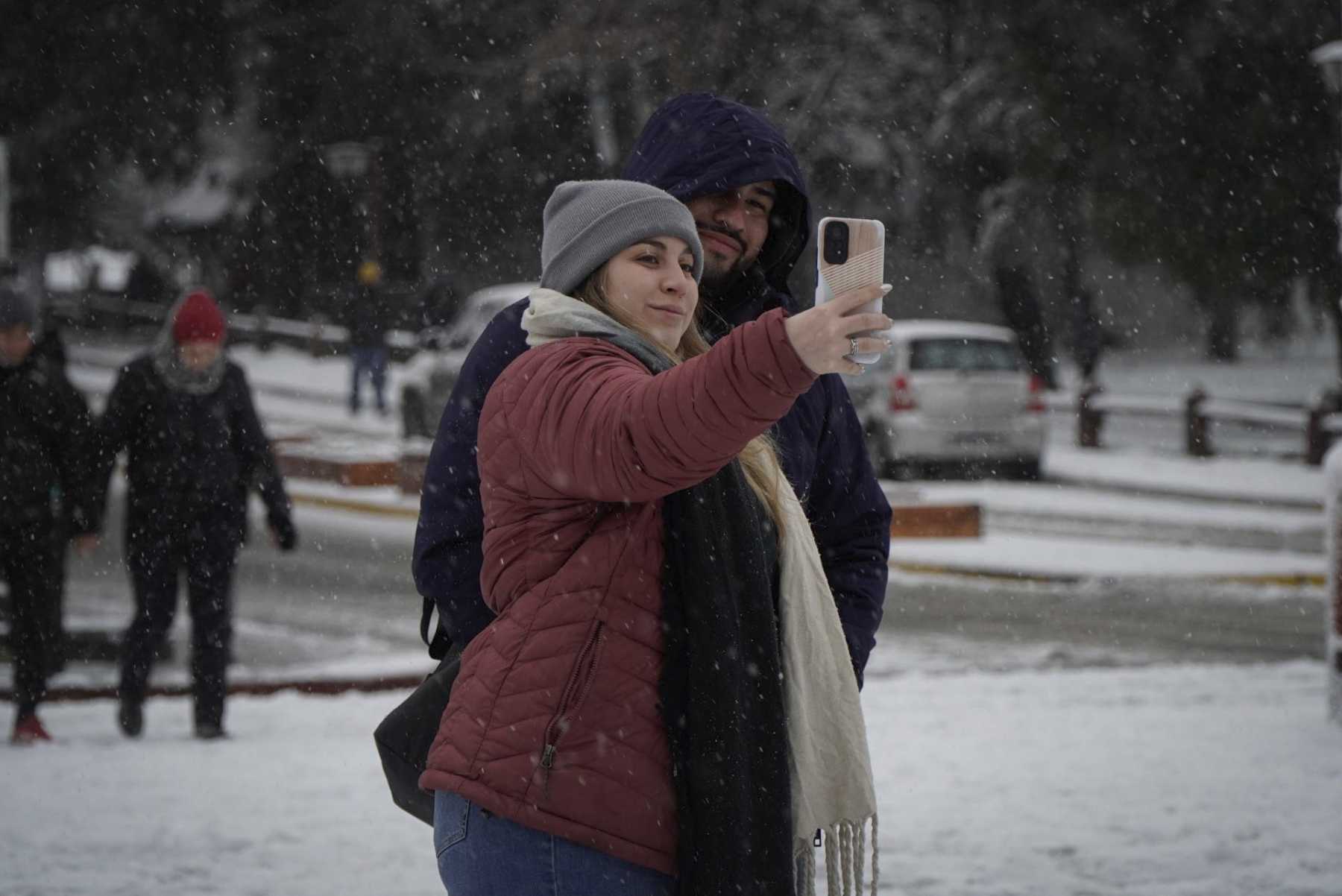 Para los turistas la nieve es un disfrute y así lo evidenciaron desde temprano en el Centro Cívico donde muchos visitantes se acercaron para fotografiar la postal de Bariloche nevada y para jugar con la nieve. Algunos se animaron a armar muñecos y otros ya con el amanecer, a partir de las 9, recorrían la calle comercial Mitre en busca de indumentaria para nieve y algunos artículos típicos como el «culipatín» para trasladarse a los cerros.