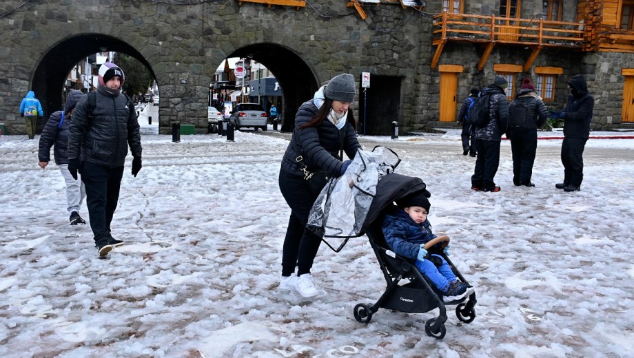 El temporal de nieve se inició el lunes en las zonas más altas del ejido de Bariloche y en toda la cordillera, pero recién hoy se manifestó en el centro de la ciudad donde se formó una capa de manto blanco y pasadas las 10 los copos grandes entusiasmaron a los turistas.