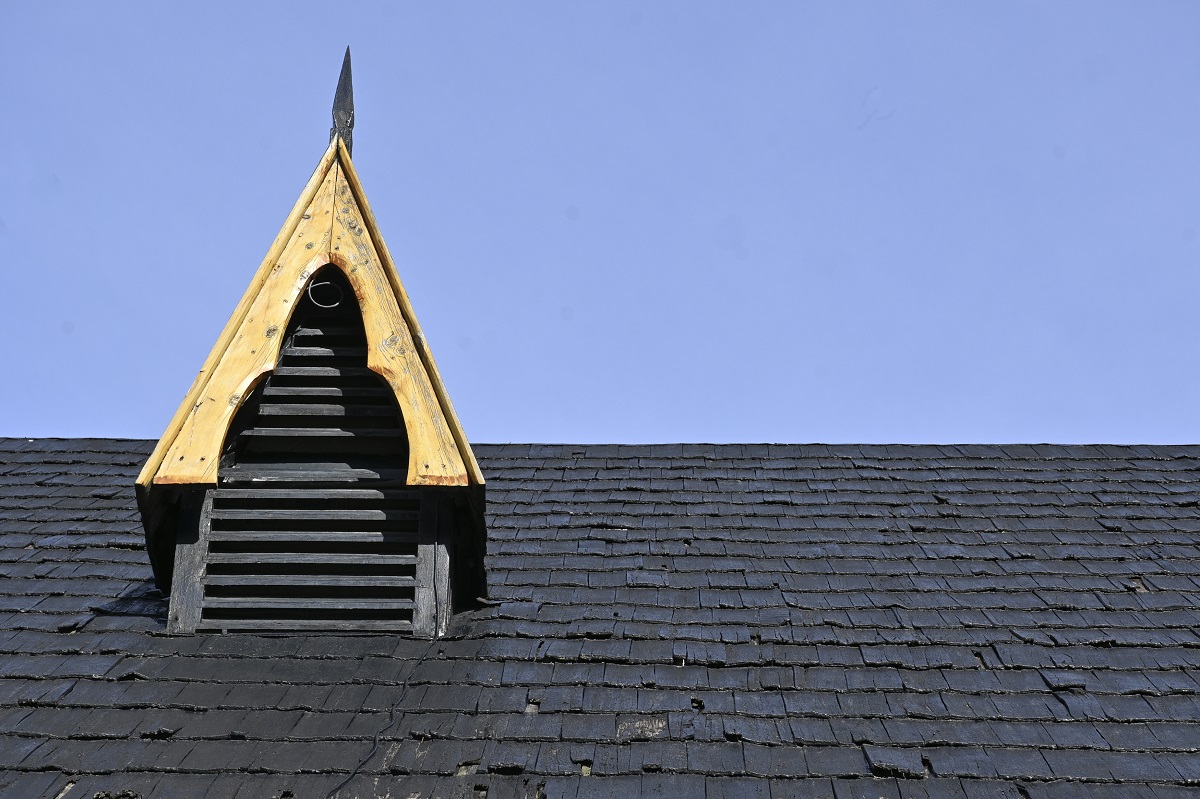 Relató que se hizo una intervención años atrás para intentar proteger el techo de la parroquia San Eduardo. Se colocó brea, pero no fue la solución. Al contrario, aseveró, “la brea impide la materialidad de la tejuela de alerce”, que tiene la particularidad de que al humedecerse se hincha, lo que impide las filtraciones.