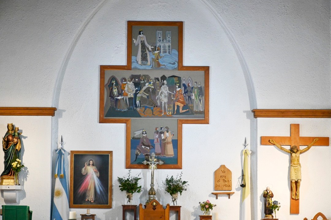 La capilla San Eduardo (elevada por la Iglesia Católica años atrás a la categoría de parroquia) ya no tiene el brillo que el padre de Gastón conoció. El paso del tiempo y la falta de mantenimiento causan heridas profundas en su estructura.