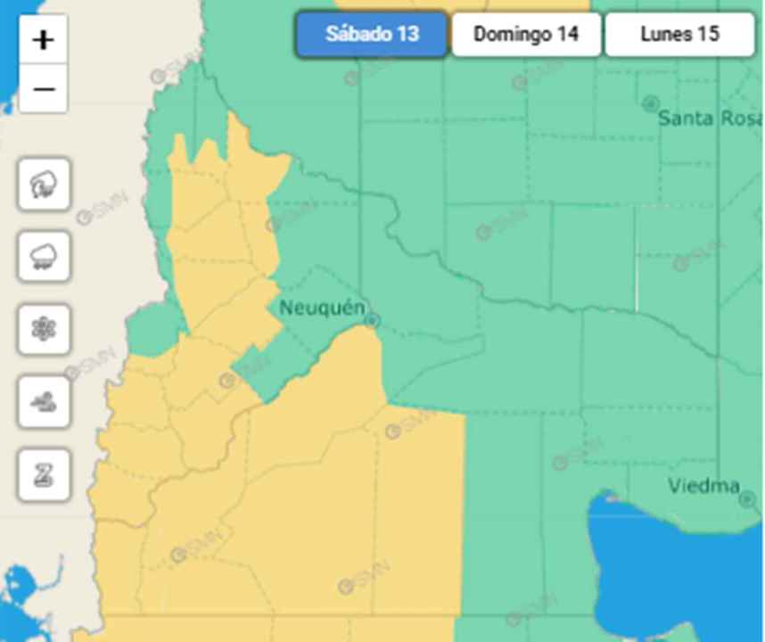 El pronóstico para este sábado 13 y domingo 14 anticipa condiciones adversas en Neuquén y Río Negro, con especial impacto del viento y ráfagas intensas. Desde los reportes oficiales se advierte sobre ráfagas elevadas en distintos puntos de la región, según informó el Servicio Meteorológico Nacional (SMN).