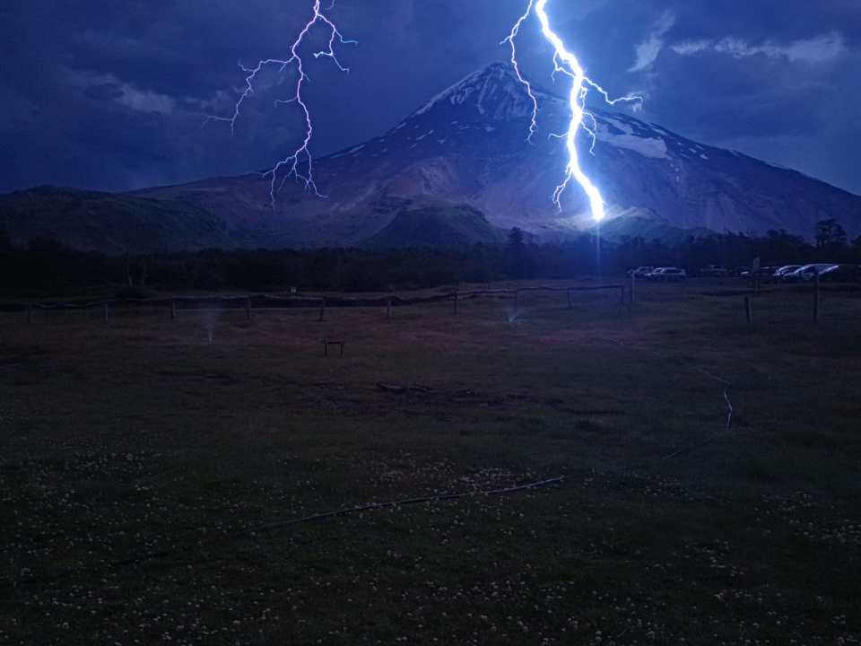 La imagen que logró tomar la guardaparque Celeste Prieto la madrugada de la última tormenta en el volcán Lanín. Foto: gentileza