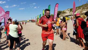 Otros ya estaban vacacionando y no quisieron perderse la posibilidad de poner el cuerpo en movimiento, como el matrimonio neuquino compuesto por Francisco y Elia, de Zapala. Con 61 años él y 57 ella los dos se lucieron en la competencia, disfrutando de cada tramo. “Y corrimos, no caminamos. Y Eso que la arena es pesadita” contó riendo el hombre.