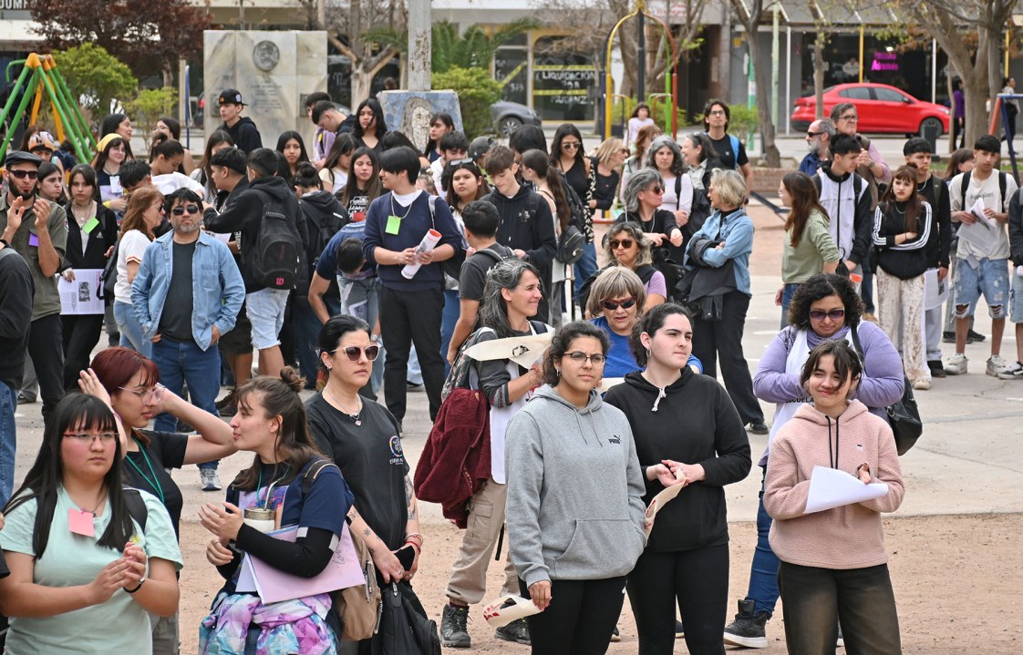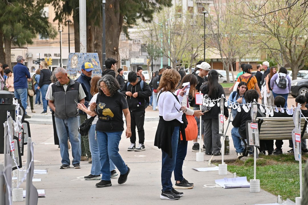 Centenares de secundarios volcaron en los cordeles de la plaza de la Justicia, en Cipolletti, producciones literarias vinculadas a la Noche de los Lápices, cuando desaparecieron adolescentes durante la dictadura militar.