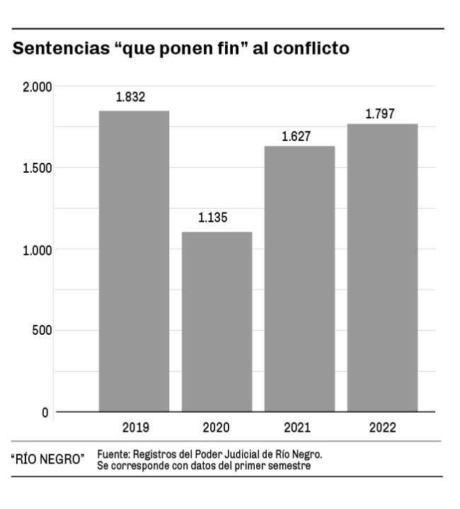 En general, el tiempo de sentencia en juicio va de año y medio a dos años, pero llega a los tres y, también, a los cuatro en los tribunales roquenses.