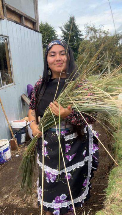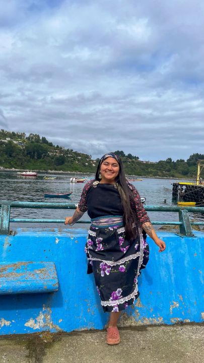Sofía nació en San Juan de la Costa en Chile, pero actualmente vive en el campo, cerca de la cordillera y aunque pasó por Santiago, creció en un entorno profundamente mapuche. “Tengo una mamá y un papá mapuche”, cuenta. “Mi familia es mapuche, mis amigos, mis vecinos también. Estoy muy inmersa en la cultura”.