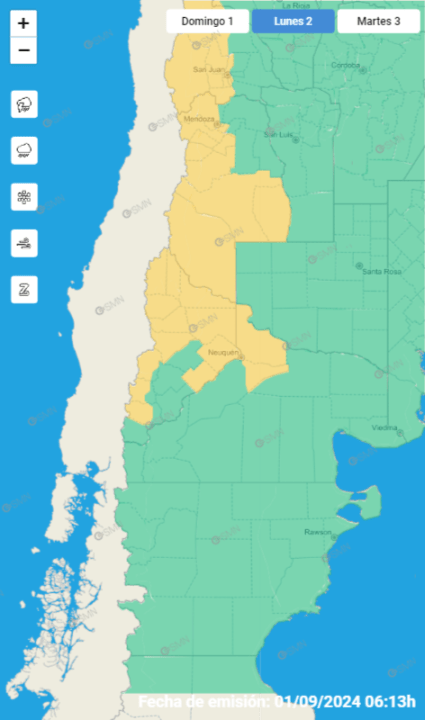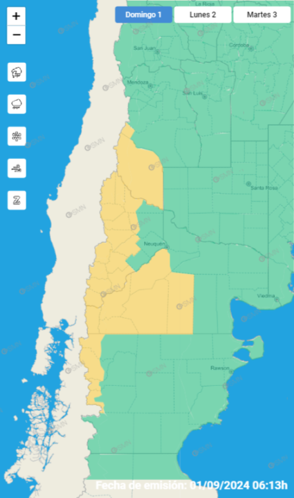 El Servicio Meteorológico Nacional (SMN) informó de una alerta por viento que regirá por la tarde del domingo en la provincia de Neuquén, especialmente en Catán Lil, Collón Curá, Zapala, y en toda la zona cordillerana.