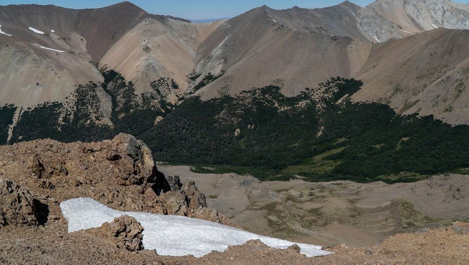 Hacia arriba, asoma la cumbre del cerro Meta, a 2.100 metros de altura, donde un 13 de mayo de 1957, en medio de una fuerte tormenta de nieve, un avión de Lade (Líneas Aéreas del Estado) se estrelló dejando un saldo de 15 muertos (cinco tripulantes y diez pasajeros).