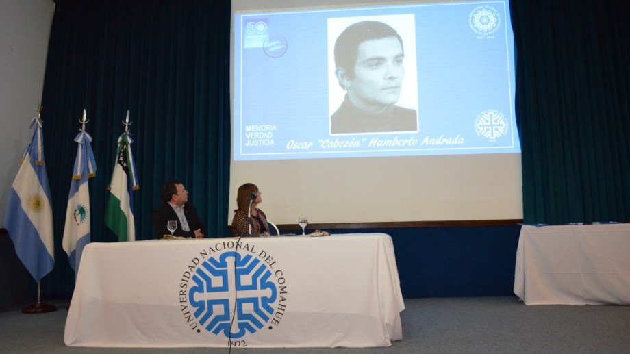 “Es un paso más en la larga lucha contra la impunidad”, dijo la rectora de la UNCo, Beatriz Gentile, que presidió el acto principal junto al vicerrector, Paul Osovnikar, autoridades y familiares de las víctimas.