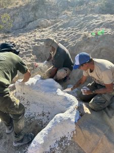 La campaña fue liderada por Juan Porfiri, paleontólogo de la Universidad Nacional del Comahue, acompañado por la estudiante de Geología Lucia Liria, el técnico Federico Poblete y el equipo del Museo Provincial de Historia Natural de Santa Rosa, integrado por su director Daniel Pincen, Lucas Cheme Arriaga y el técnico Pablo Tejerina.