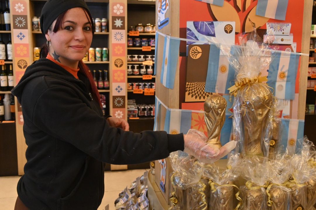 La chocolatería Arrayán optó por trasladar el Mundial de Fútbol a sus huevos de chocolates. En un mostrador repleto de banderas argentinas se exhibe la gran Copa de chocolate, seguida por otras de menor tamaño y todos tipo de huevos que llevan el escudo argentino y el emblemático número 10.