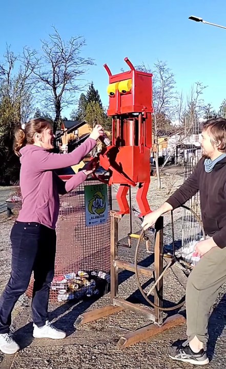 Ladrón de chatarra y su compactadora de latas: un éxito rotundo
