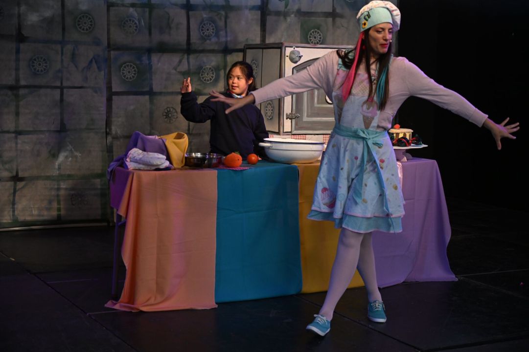 Cuando los chicos terminaron de decorar, envolvieron los huevos en un papel celofán amarillo y de pronto, apareció un conejo de Pascuas. Los chicos se le abalanzaron para saludarlo y tomarse fotos. Al término del encuentro, se sentaron en el centro de la sala para disfrutar de una comedia musical, «La cocina de Roberta».